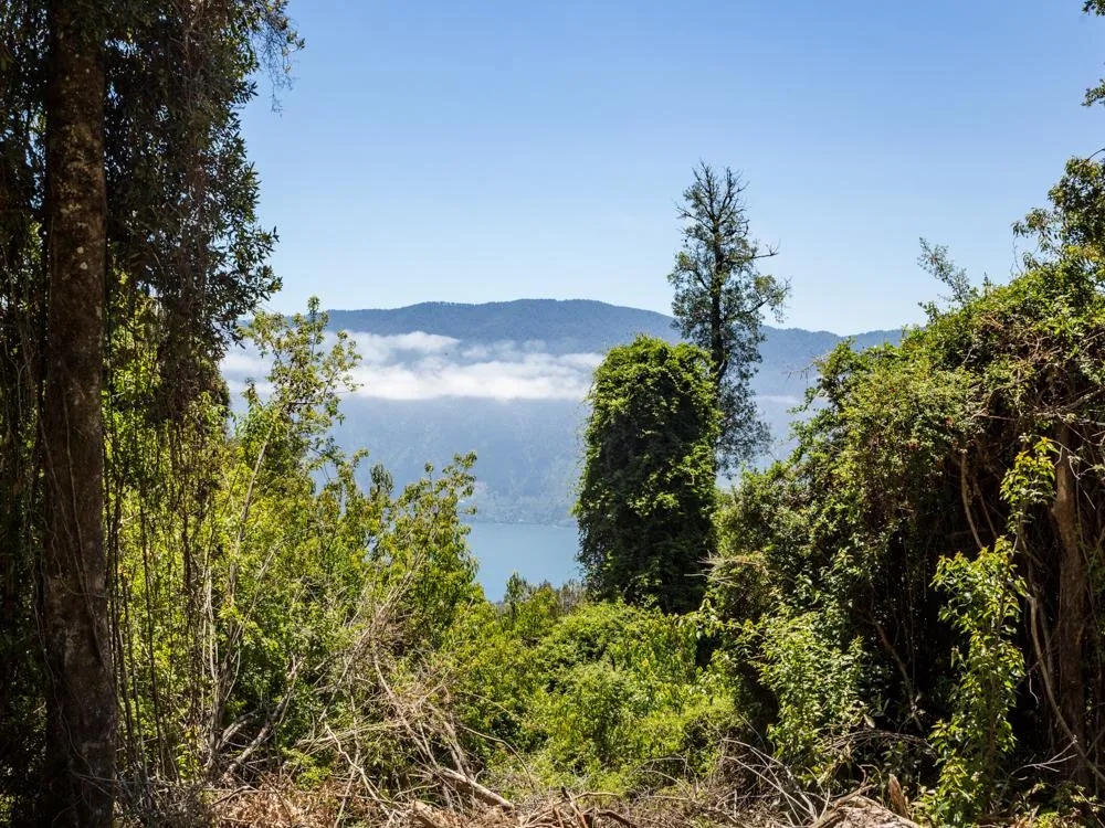 En la ribera Sur de Lago Riñihue en la región de Los Ríos, con acceso a naturaleza, agua y servicios básicos.