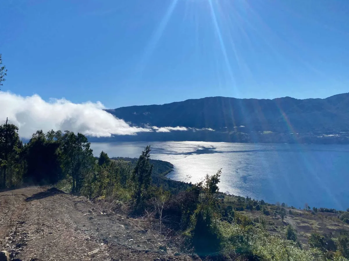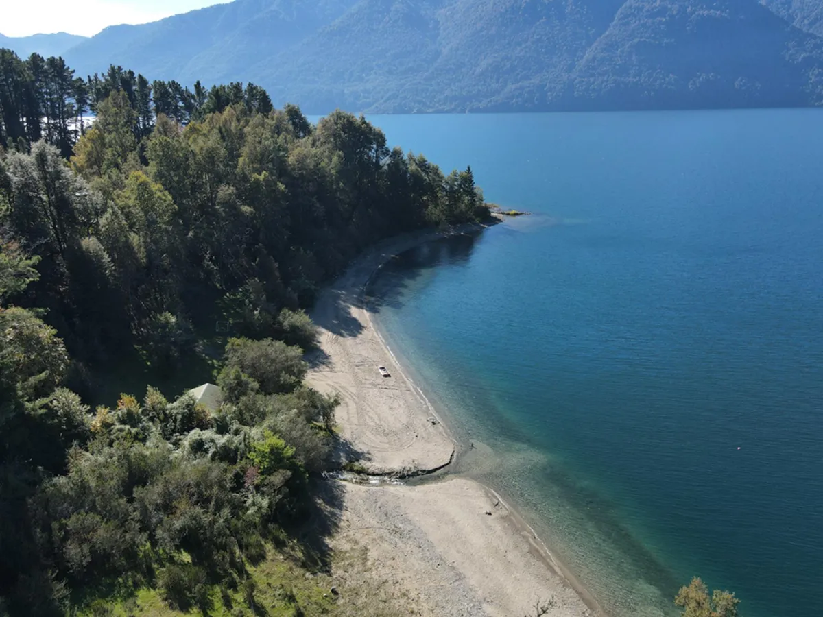 En la ribera de Lago Riñihue, Región de Los Ríos, con acceso a naturaleza, agua y servicios básicos.